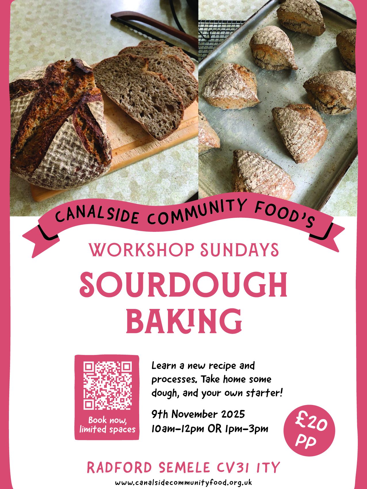 Learn a new recipe and processes, with sourdough rolls to bake and taste, whilst also supporting Canalside. This workshop will be a mixture of hands on mixing dough, watching some of the processes and talking about your starter and how to look after it.