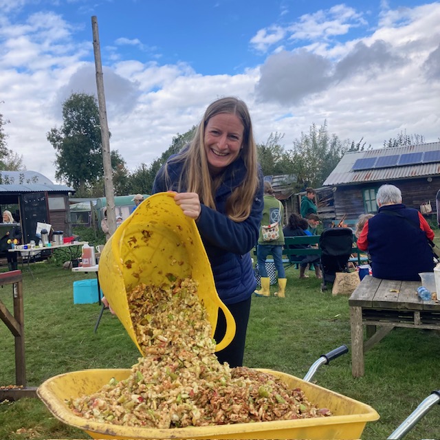 The apple harvest is ongoing, about half the crop has been brought in and by the time you read this the later varieties should all have been picked. These will be stored and integrated into your veg share over the next few months. We enjoyed the fabulous apple pressing day in mid October with the start of apple picking and lots of juice making.